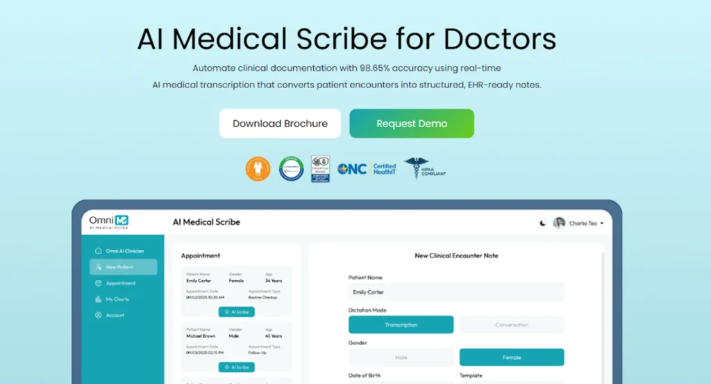 1. OmniMD: EHR‑centric AI medical transcription and scribe
